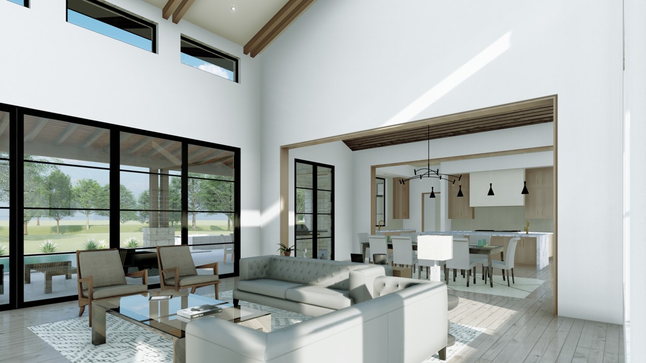 Modern contemporary home on a spacious two-acre corner lot, featuring spa-inspired primary suite complete with infrared sauna